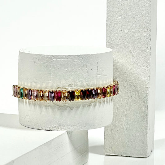 'Valencia' Multi-coloured Baguette Bracelet in Silver