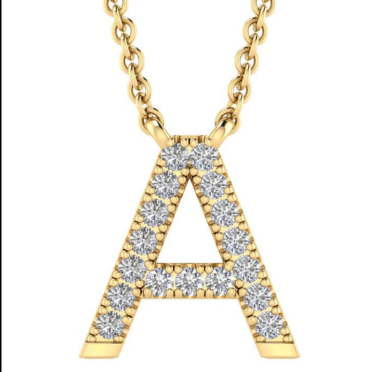 9ct Yellow Gold Initial 'A' with 0.06ct Diamond Necklace