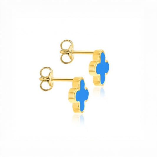 9ct Yellow Gold Petal Earrings with Synthetic Turquoise