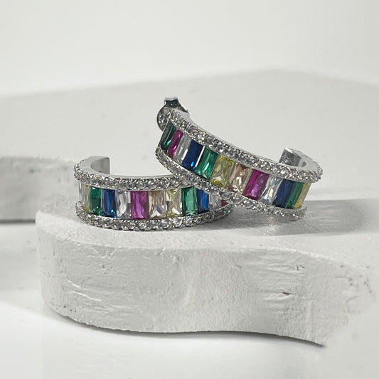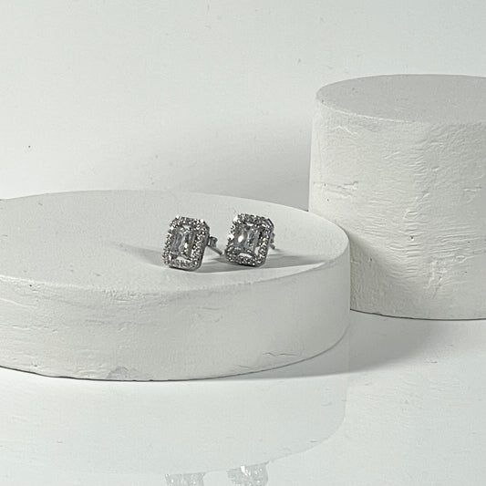'Juliet' Scattered Baguette and Emerald cut stone Earrings