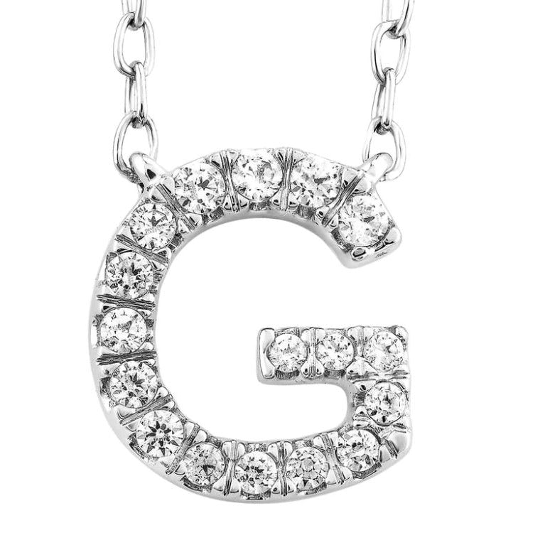 9ct White Gold Initial 'G' with 0.06ct Diamond Necklace