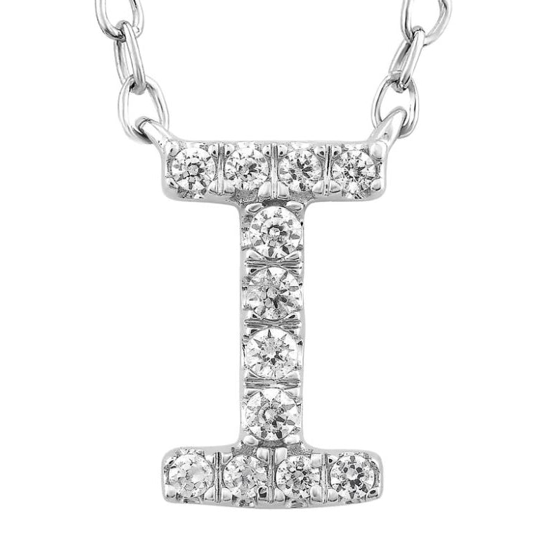 9ct White Gold Initial 'I' with 0.06ct Diamond Necklace