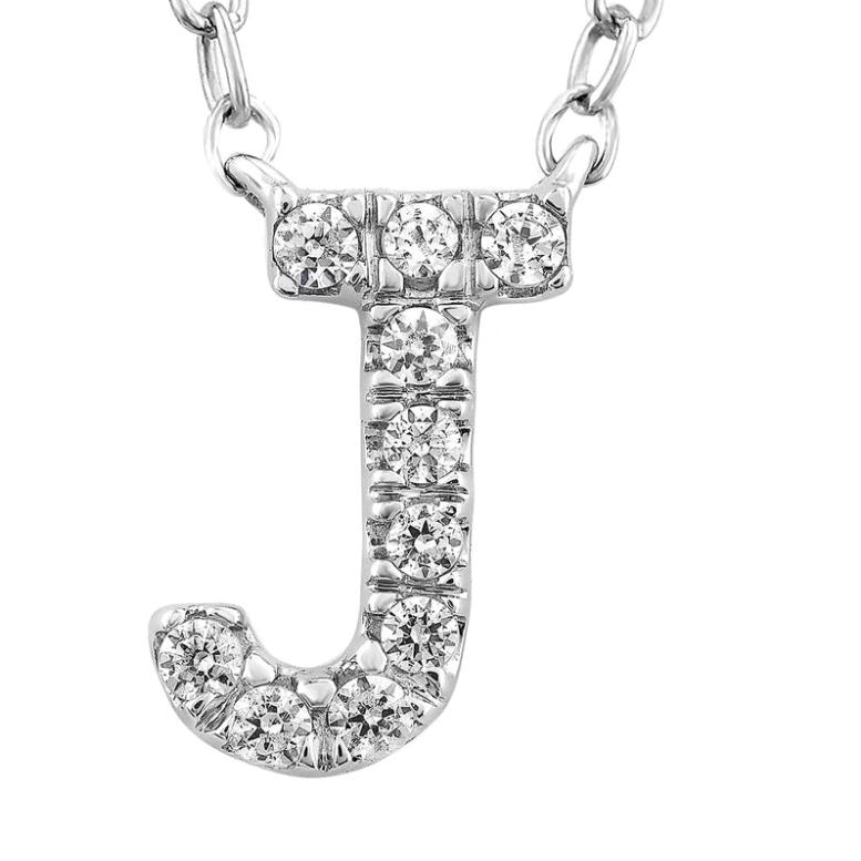 9ct White Gold Initial 'J' with 0.06ct Diamond Necklace