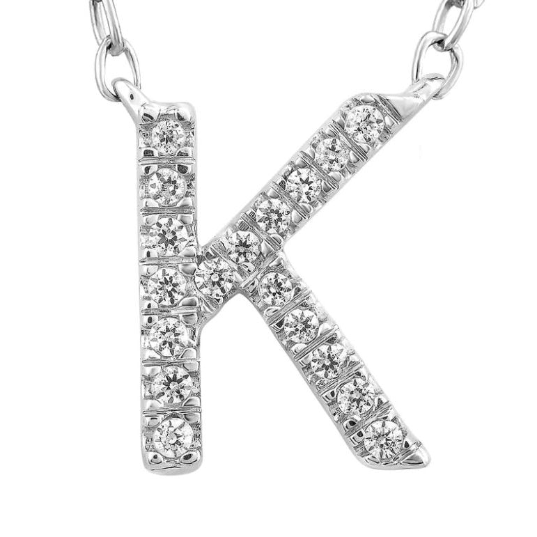 9ct White Gold Initial 'K' with 0.06ct Diamond Necklace