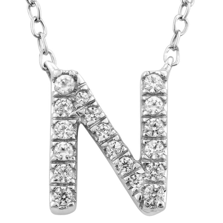 9ct White Gold Initial 'N' with 0.09ct Diamond Necklace