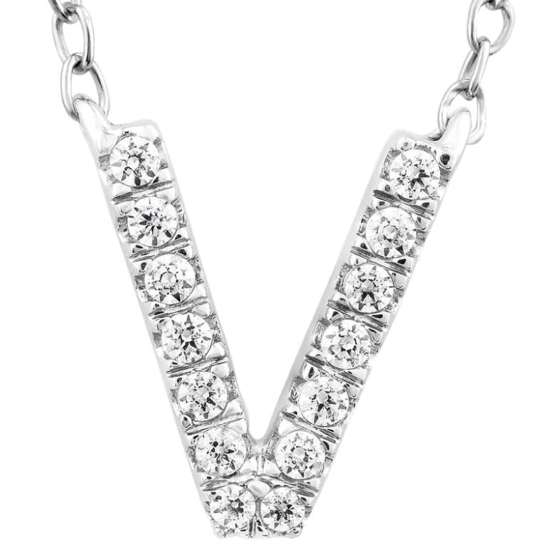 9ct White Gold Initial 'V' with 0.06ct Diamond Necklace
