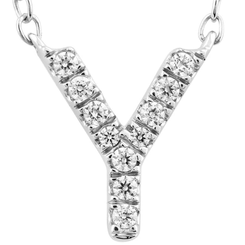 9ct White Gold Initial 'Y' with 0.06ct Diamond Necklace