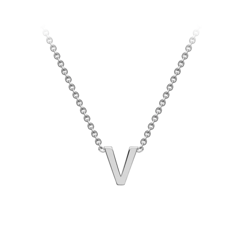 9ct White Gold Petite Initial 'V' Necklace