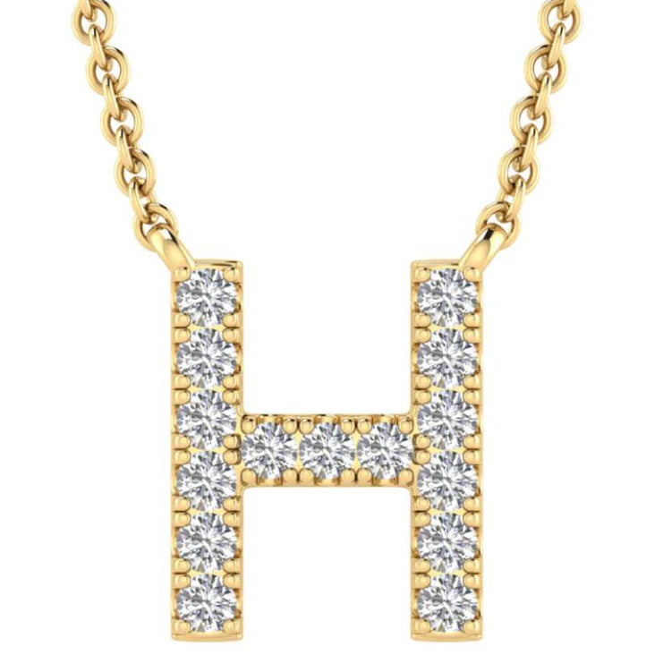 9ct Yellow Gold Initial 'H' with 0.09ct Diamond Necklace