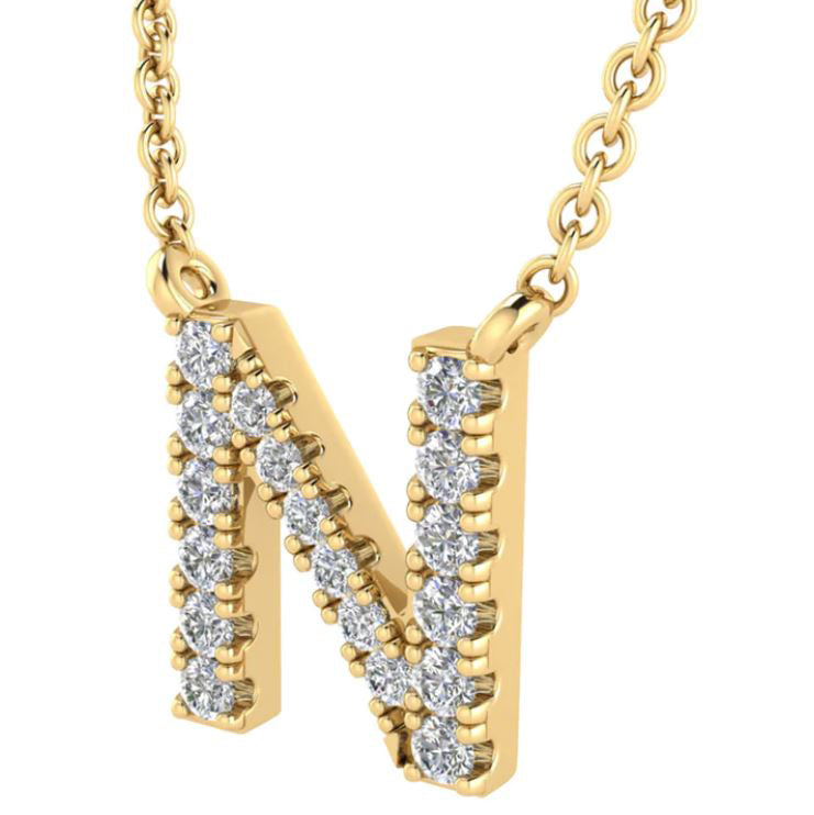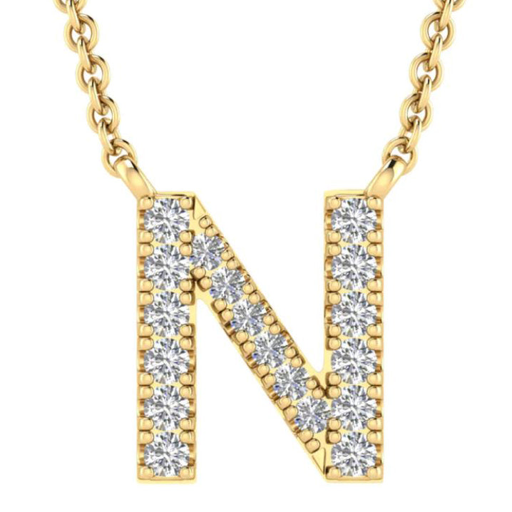 9ct Yellow Gold Initial 'N' with 0.09ct Diamond Necklace