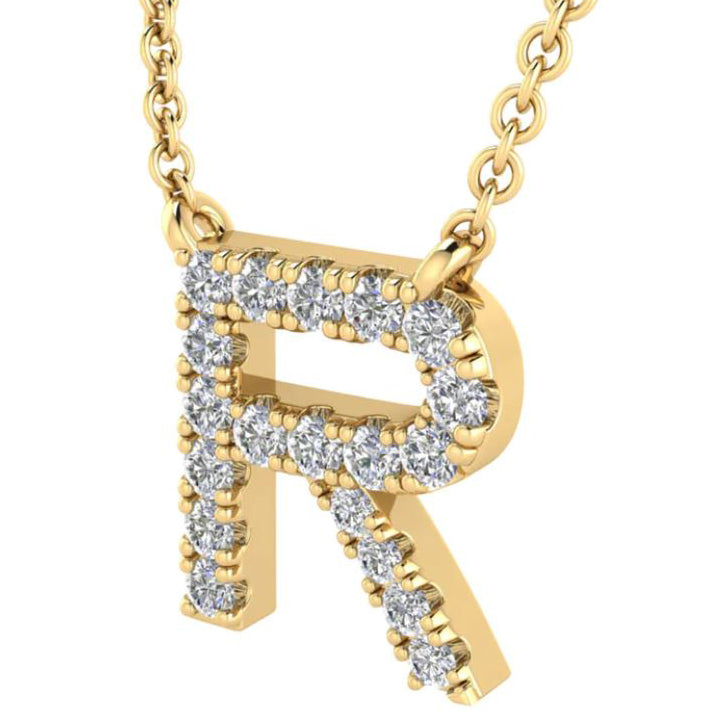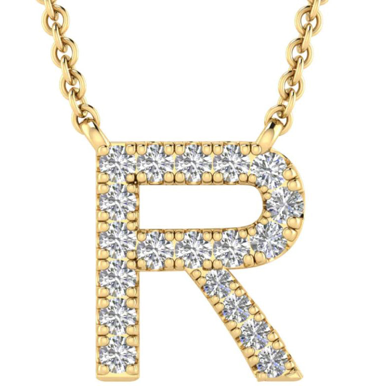 9ct Yellow Gold Initial 'R' with 0.09ct Diamond Necklace