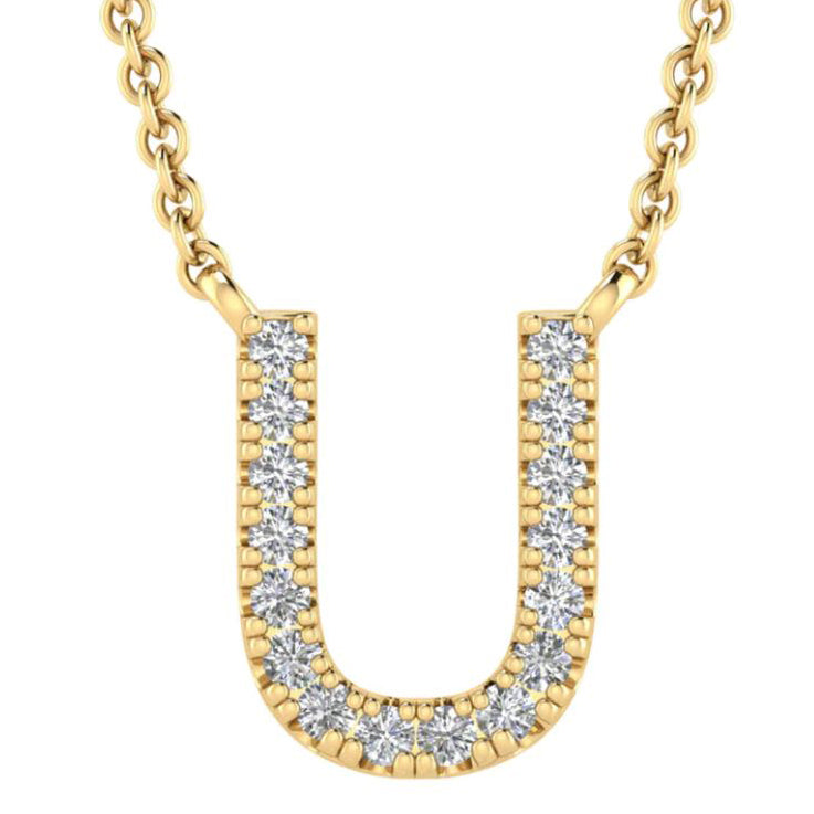 9ct Yellow Gold Initial 'U' with 0.06ct Diamond Necklace