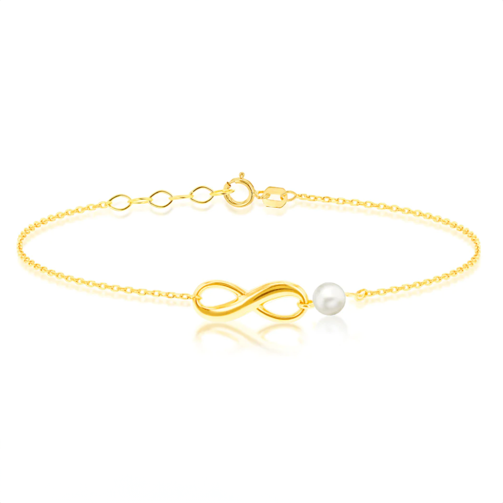 'Amari' Yellow Gold Infinity bracelet with Freshwater Pearl