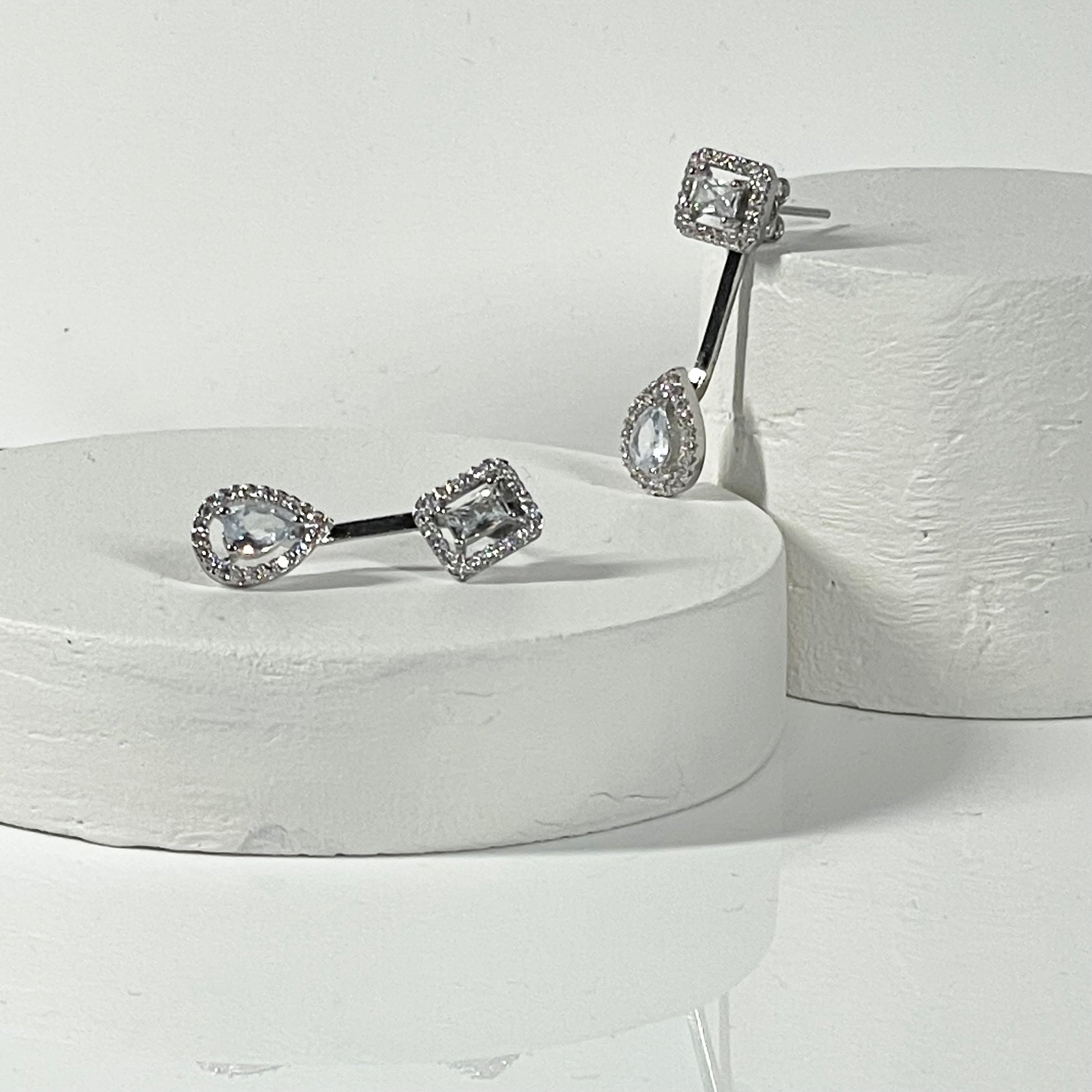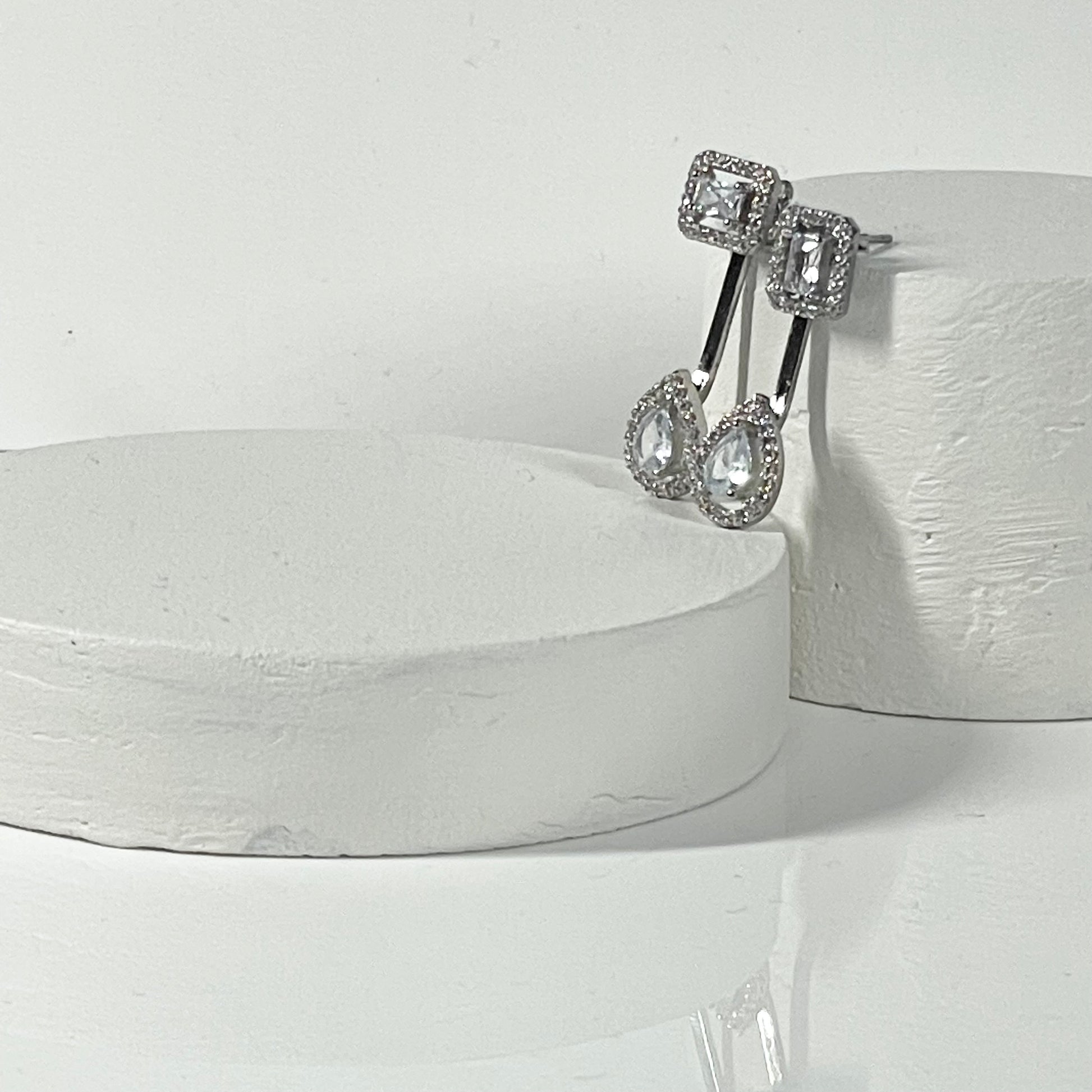 'Petra' Emerald stud and pear cz drop Earrings